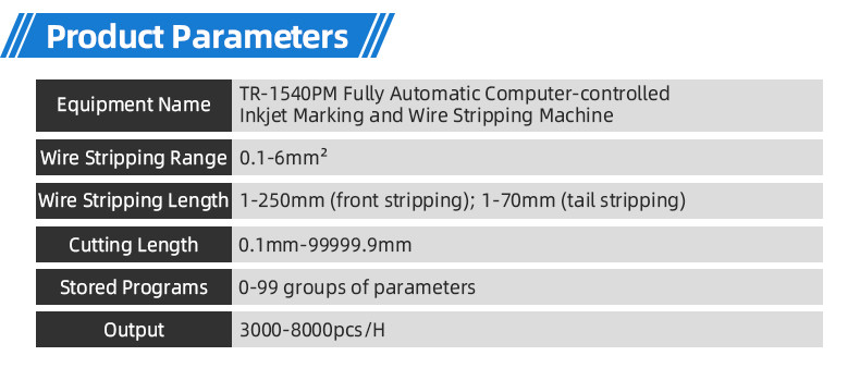 Home / All / Cable/Wire Cutting and Stripping Machine / Computer Wire Stripping Machine / TR-1540PM Fully Automatic Computer-controlled Inkjet Marking and Wire Stripping Machine(Wire stripping range: 0.1-6 mm²)