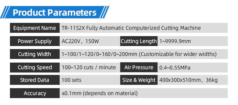 Cutting Width: 1~100/1~120/0~160/0~200mm (Customizable for wider widths)
