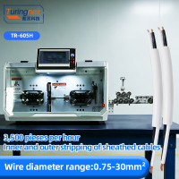 TR-605H Large Square Computerised Wire Stripping Machine (Sheathed wires stripped inside and outside) Functions: ①Single-core wire, multi-core cable wire, shielded cable, fully automatic fixed-length cutting and stripping; ② multi-core sheathed wire, outer skin peeling, inner core wire peeling, cutting off a complete.